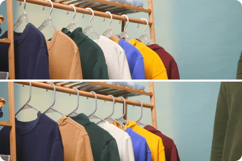 With a simple twist, hang or remove clothes easily, up to 10x faster than using regular hangers.
