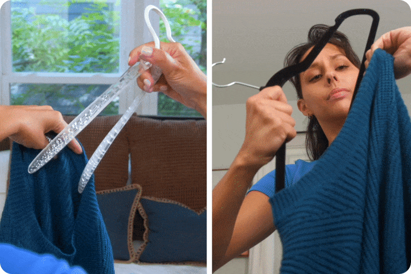 Hang or take off your clothes with ease without stretching the necklines.